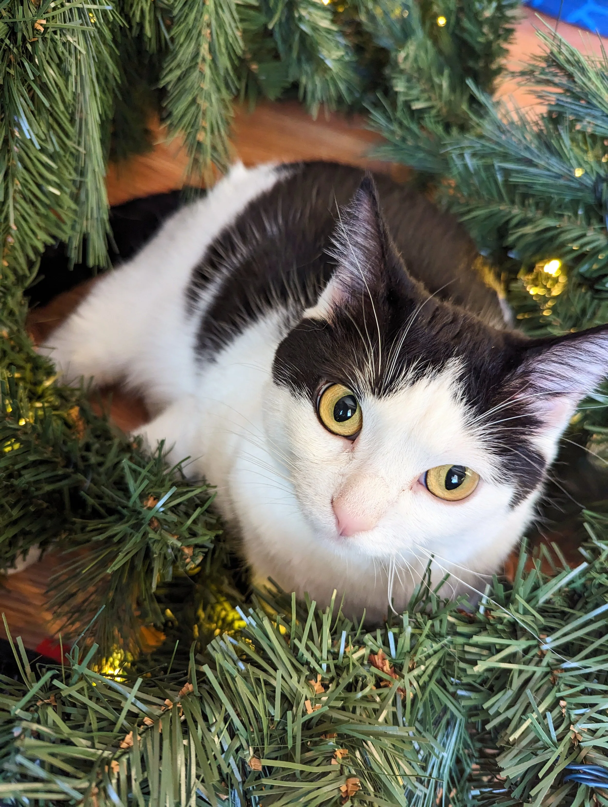 Della was a beautiful black and white cat with the softest fur, and a personality as unique as she was. We will forever cherish her distinctive meows, her fondness for perching on shoulders, and her playful antics.